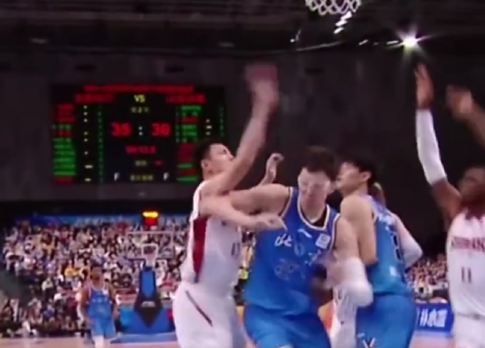 暴怒!周琦篮下进攻被焦海龙盖帽打中头部,气得摘下护目镜怒怼对方