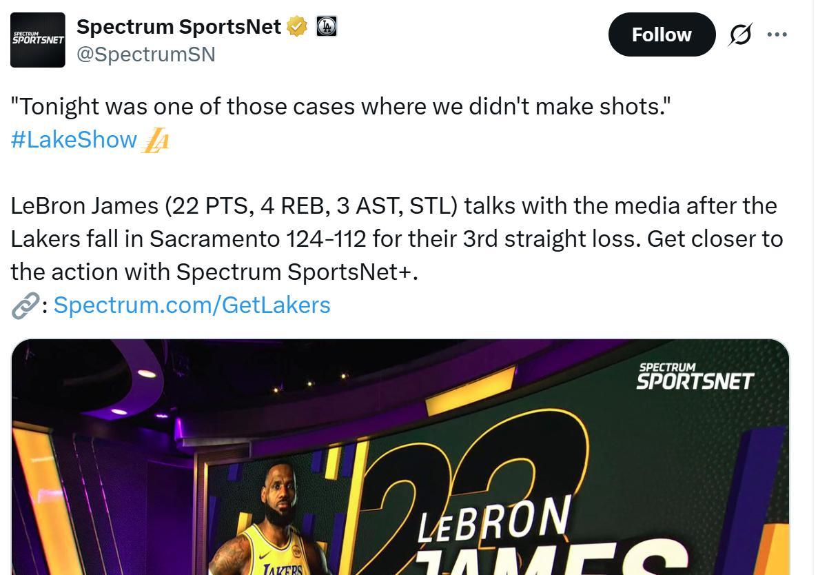 赛后湖人队记Daniel Starkand一针见血的指出:“当你阵容中有东契奇这样的球员时,你需要的就是投射能力和防守,而当下的湖人两者都不具备。”